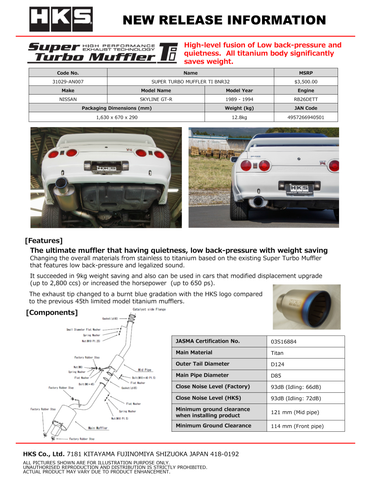 HKS SUPER TURBO MUFFLER TI BNR32 RB26DETT